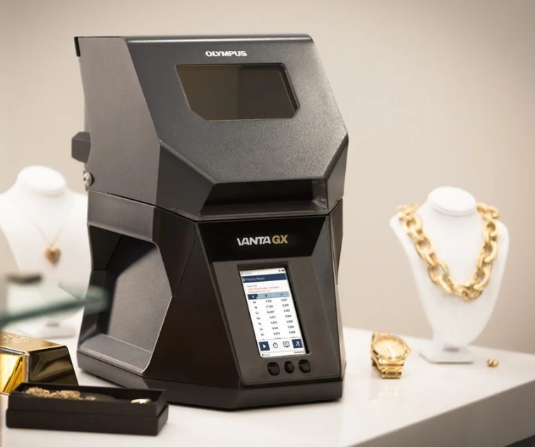Olympus Vanta GX Desktop XRF Analyzer offers the convenience of hands-free testing in a stylish countertop instrument ideal for the showroom or lab. The analyzer has a built-in aiming camera and a focused 6 mm spot size for greater accuracy and high spatial precision. Designed for safety, the analyzer locks securely during testing and only emits X-rays when the lid is closed. Bright safety lights on the front and back of the instrument indicate a test is in progress. The X-ray shielding glass window protects the user while enabling continuous viewing of valuables for greater customer trust. The spacious test chamber accommodates most sample sizes, such as necklaces,coins, and gold bars.