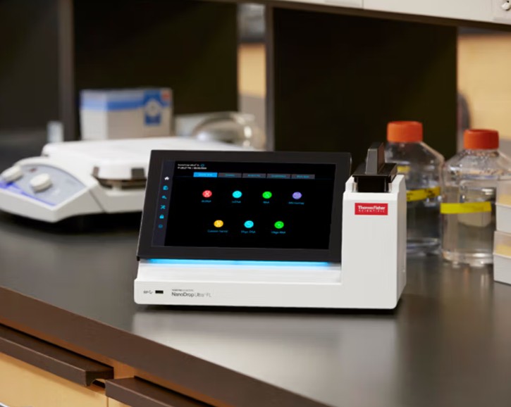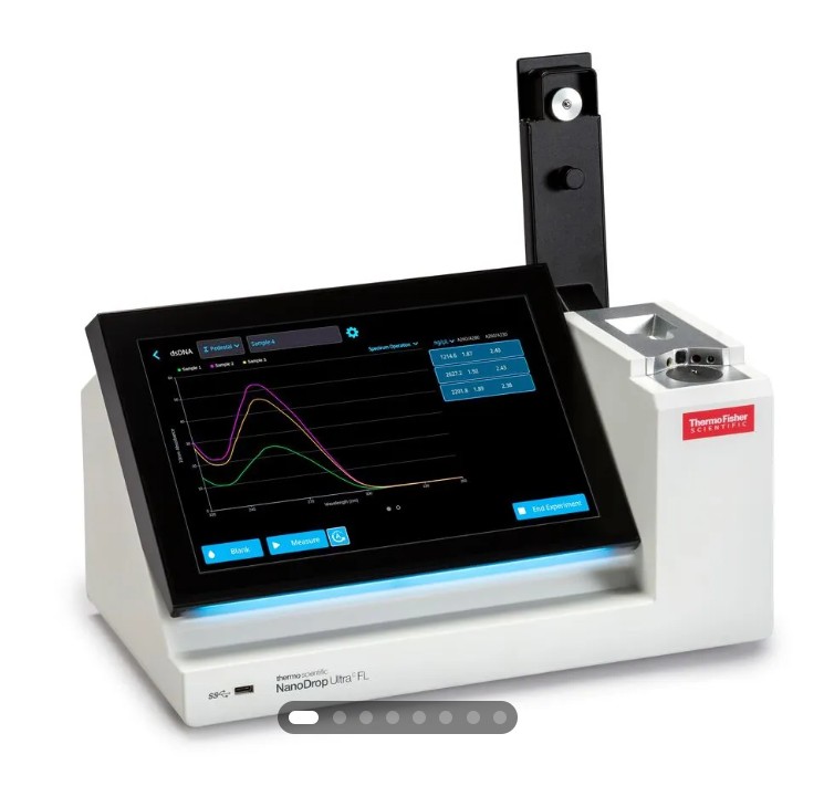 #The NanoDrop™ Ultra Microvolume UV-Vis Spectrophotometer and Fluorometer is a cutting-edge instrument designed to deliver exceptional accuracy and sensitivity for nucleic acid and protein analysis. It achieves this with minimal sample waste, analyzing volumes as low as 1.0 μL.